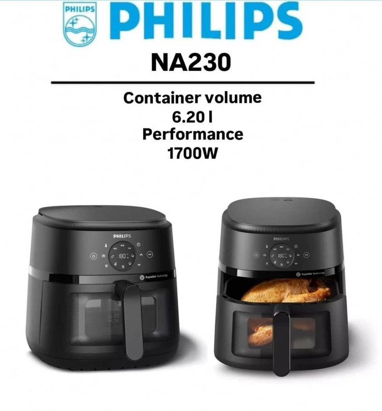 سرخکن فیلیپسNA230 با ظرفیت ۶ لیتر و قالبیت هایی همچون سبد جدا شونده و قابل شستشو،۸ برنامه پیش فرض جهت پخت و پز هر بهتر غذای شما،این محصول با کیفیت دارای پنل تمام لمس و سبد جلو شیشه ای می باشد که با توجه به وجود لامپ در داخل دستگاه کمک بسزایی جهت رویت میزان پخت غذا به عمل می آورد.