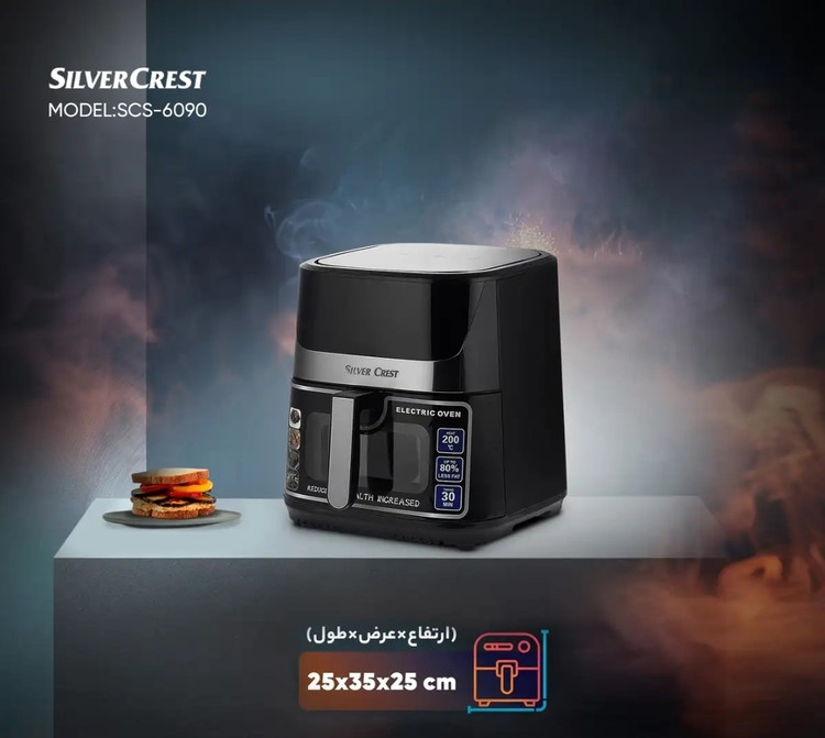 سرخکن بدون روغن **SilverCrest مدل SCS-6090** انتخابی هوشمندانه برای افرادی است که به تغذیه سالم، سرعت در آشپزی و طراحی مدرن اهمیت میدهند. این دستگاه با بهرهگیری از **سیستم گردش هوای داغ**، امکان پخت انواع غذاها را با **حداقل روغن و تا ۸۰٪ چربی کمتر** فراهم میکند، بدون اینکه از طعم و کیفیت غذا کاسته شود.