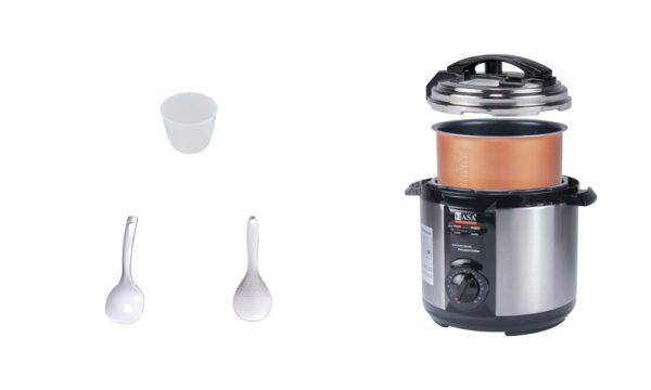 ظرفیت بالای این زودپز امکان استفاده از آن را برای گروهها و جمعیتهای 10 نفره و بیشتر هم فراهم خواهد آورد. دیگچه یا همان قابلمه در این زودپز از جنس آلومنیوم با پوشش سرامیکی نچسب است، که پخت و پز را راحتتر نموده است. بدنه این زودپز از جنس استیل ضد زنگ است، که با پلاستیک مرغوب ترکیب شده و نهایت کیفیت و زیبایی را به ارمغان آورده است. کارآیی راحت این زودپز باعث شده تا هر کاربری بدون نیاز به دانش خاصی از آن استفاده نماید. در واقع تمام چیزی که برای تنظیم نمودن زودپز در نظر گرفته شده، یک پیچ ولومی تنظیم زمان است. از دیگر امکانات این زودپز چند کاره میتوان به سوپاپ اطمینان برای تخلیه بخار اضافی و سیستم گرم نگهدارنده اشاره کرد.