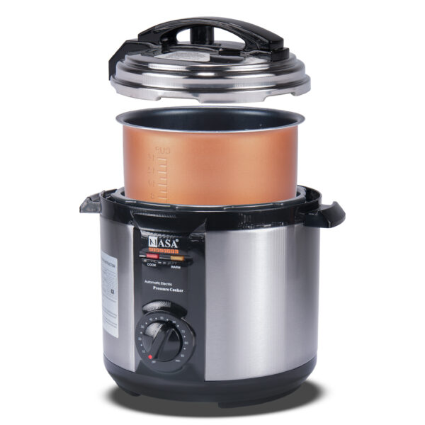 زودپز ناسا الکتریک NS-3073 موجود در فروشگاه اینترنتی ناسا الکتریک یکی از محصولات کاربردی و با کیفیتی است، که وجودش در هر آشپزخانهای ضروری به نظر میرسد. زودپز ناسا الکتریک NS-3073 قابلیتها و کاربردهای متنوعی دارد، ولی مهمترین آن قابلیت زودپز کردن مواد غذایی مختلف است، که زمان و سرعت عمل بالا را به شما هدیه میبخشد. این زودپز برای تهیه برنج، پختن لوبیا و نخود و …، پختن گوشت و مرغ، پختن سوپ و پختن فرنی و آبگوشت استفاده میشود. با توجه به این همه کارآیی نمیتوان از داشتن این وسیله در آشپزخانه خود صرف نظر کرد. توان مصرفی در نظر گرفته برای این زودپز 1000 وات بوده، که نشان از قدرت و سرعت بالای آن دارد. مجهز بودن به ترموستات و فیوز حرارتی از داغ شدن و حرارت بالای دستگاه جلوگیری خواهد کرد و مانع از سوختن آن میشود.