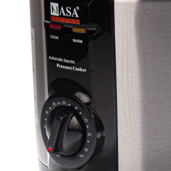 برند ناسا الکتریک بر بالای نوار خودنمایی میکند، که تعریف از اصالت محصول دارد. همچنین دو چراغ یکی زرد و یکی قرمز، که مربوط به حالت پخت و گرم نگهدارنده است بر روی این نوار مشکی دیده میشود و در آخر یک پیچ چرخشی که تمام تنظمیات دستگاه را دربرمیگیرد تعبیه شده است، که مدت زمان پخت و پز را تنظیم خواهد کرد. پایههایی که در زیر بدنه دستگاه قرار گرفتهاند، ساختار ضد لغزش دارند و بر روی سطوح مختلف ثابت میمانند.