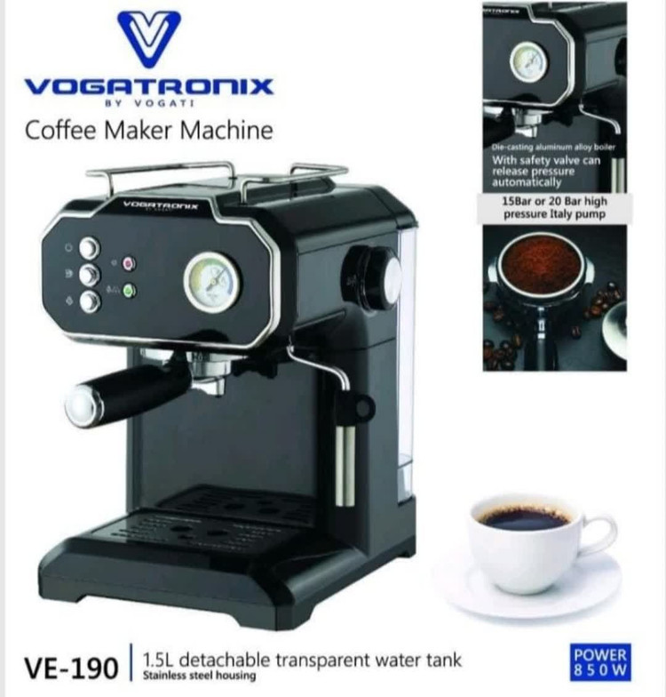 برند وگاتی از سری برندهایی است که همیشه دنبال تولید محصولات با کیفیت و قیمت مناسب برای مشتریانش است. میخواهیم محصولی دیگر از وگاتی برای شما معرفی کنیم که شرایط را دارد . اسپرسوساز Vogati VE-190 یک اسپرسوساز درجه یک در فشار بخار قوی و برخلاف خیلی از اسپرسوسازها دارای صدای کم است. این دستگاه با فشار بخار20 بار و قدرت توان مصرفی 850 وات کرمای عالی نشان دهنده ی قدرت بسیار خوب وگاتی است. وگاتی مجهز به نازل تولید بخار و آب جوش است که از آن برای تهیه کاپوچینو و کف شیر و انواع نوشیدنیهای گرم استفاده می شود. در مدل ووگاتی نازل بخار قابل چرخش طراحی شده است . وگاتی مدل VE-190پیچ تنظیم بخار دارد. این دستگاه از بویلر و پمپ آب قوی استفاده شده است که بر روی درجه حرارت قهوه خروجی و همچنین بخار آب تاثیر گذار است.